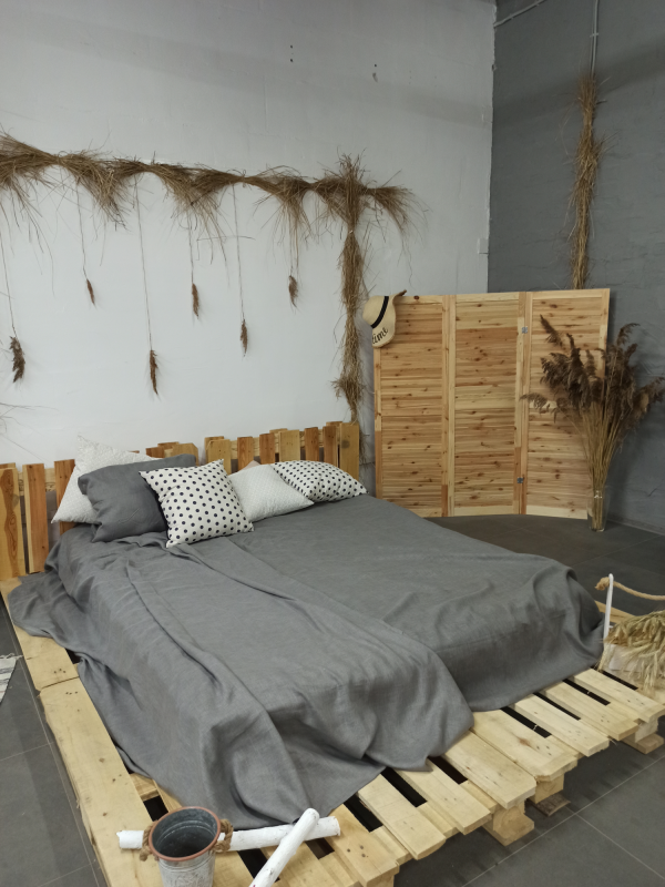 Комплект двуспального постельного белья из льна, цвет графит