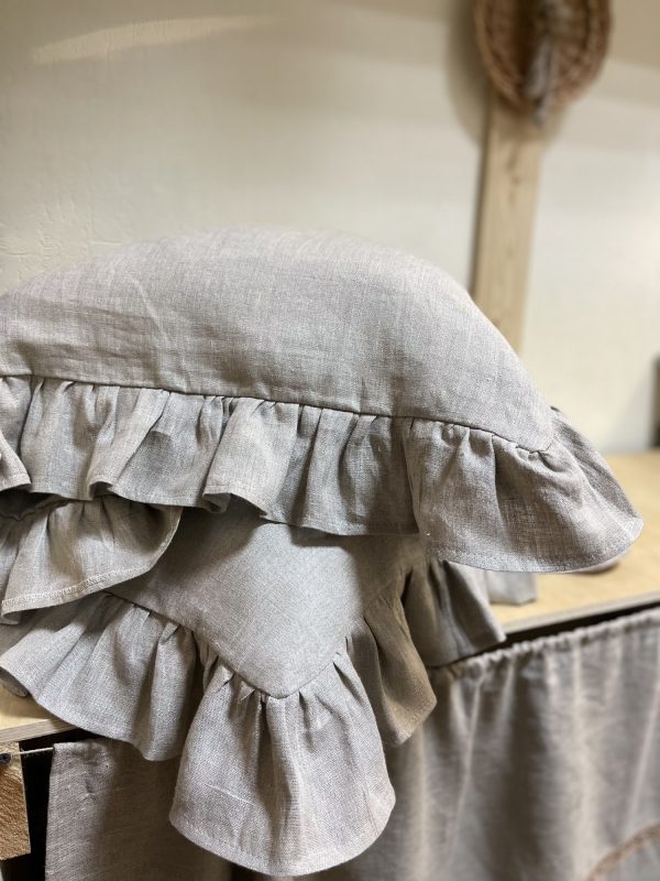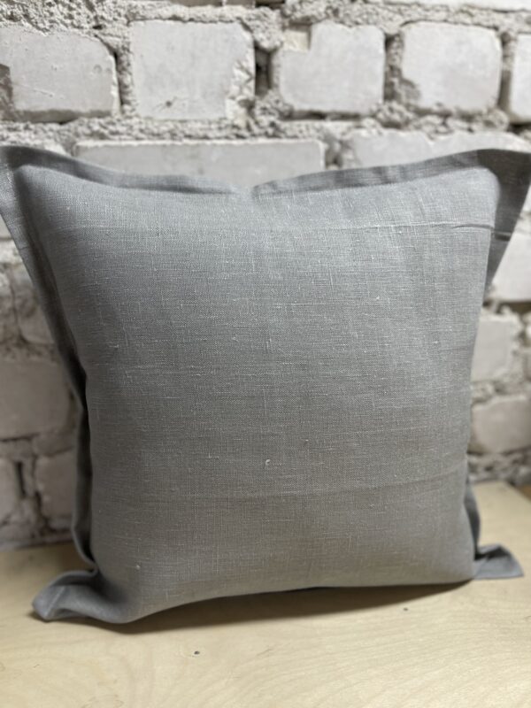Наволочка из льна с рюшей по периметру, цвет серый