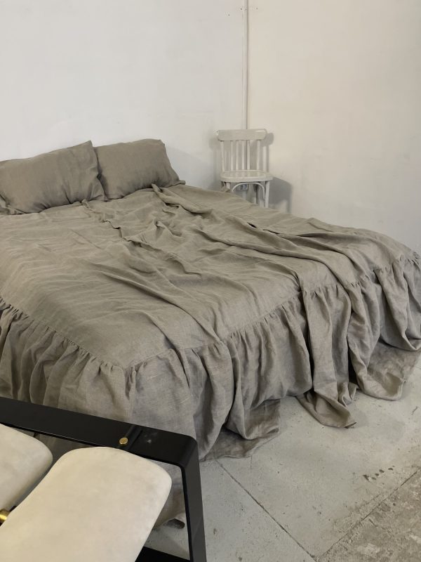 Комплект постельного белья изо льна с рюшей, умягченный лен натурального цвета