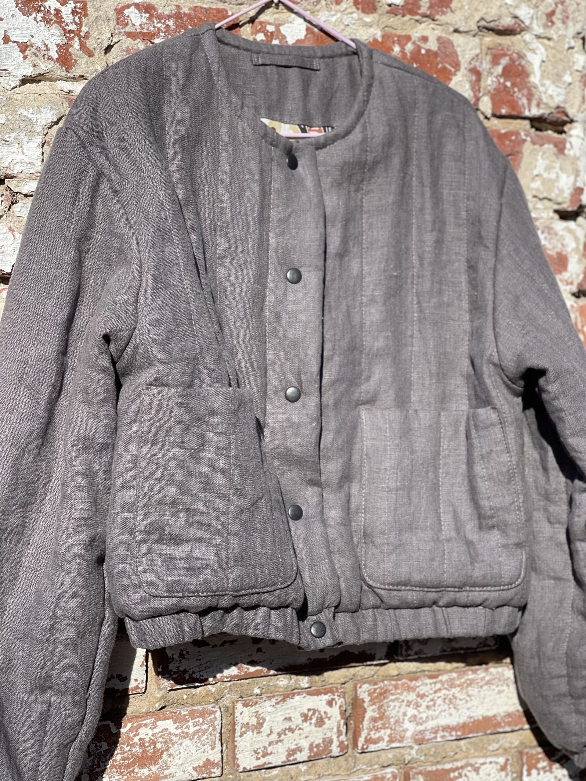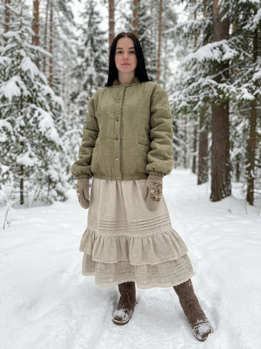 Льняная, стеганая женская фуфайка.