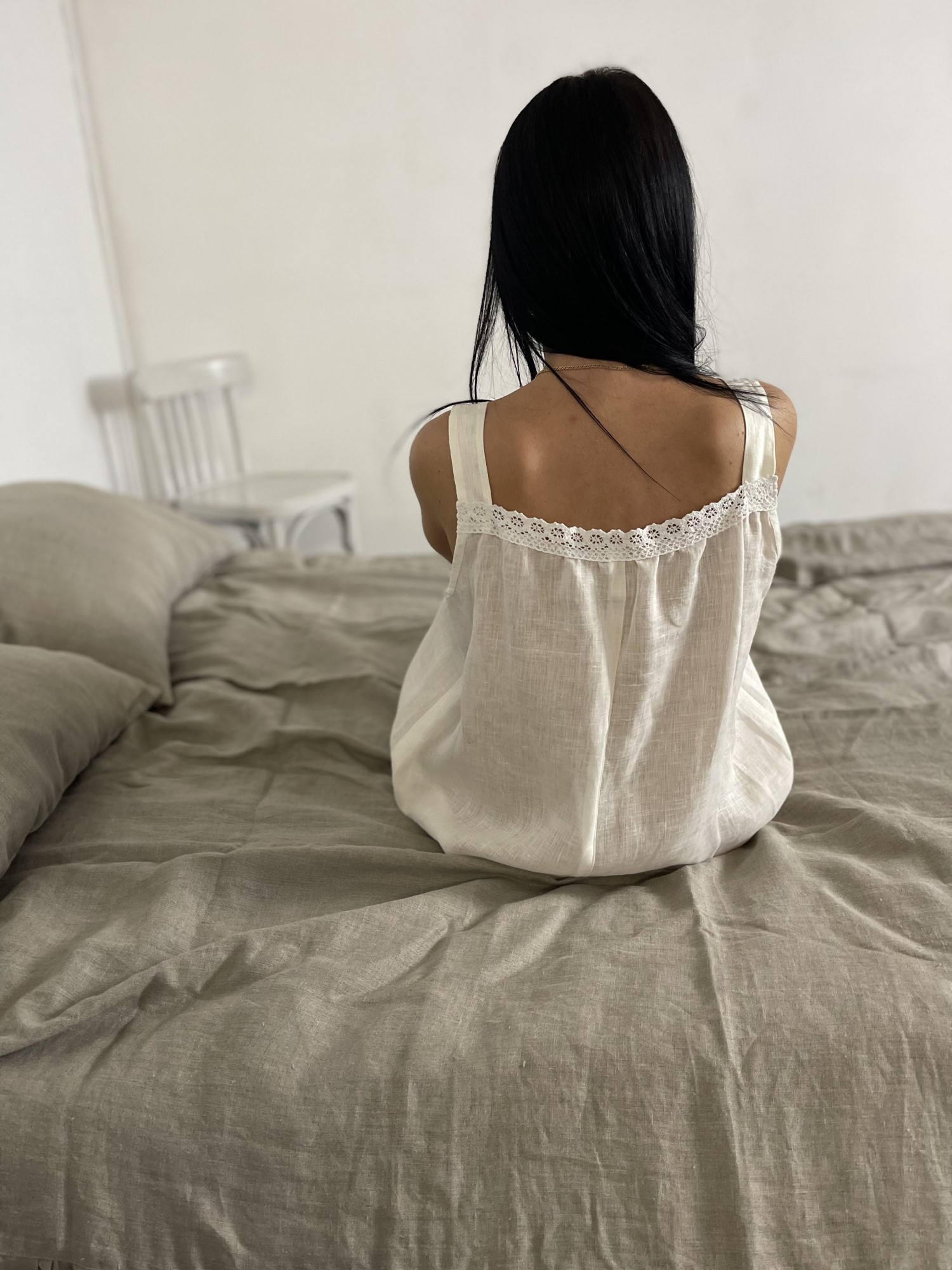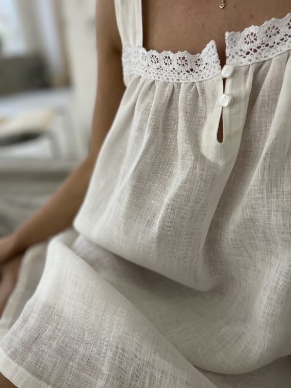 Сорочка выполнена из 100% льна и натурального кружева. Рисунок и цвет кружева могут быть иные, чем на фото. Можно сделать на завязках или на бретелях.