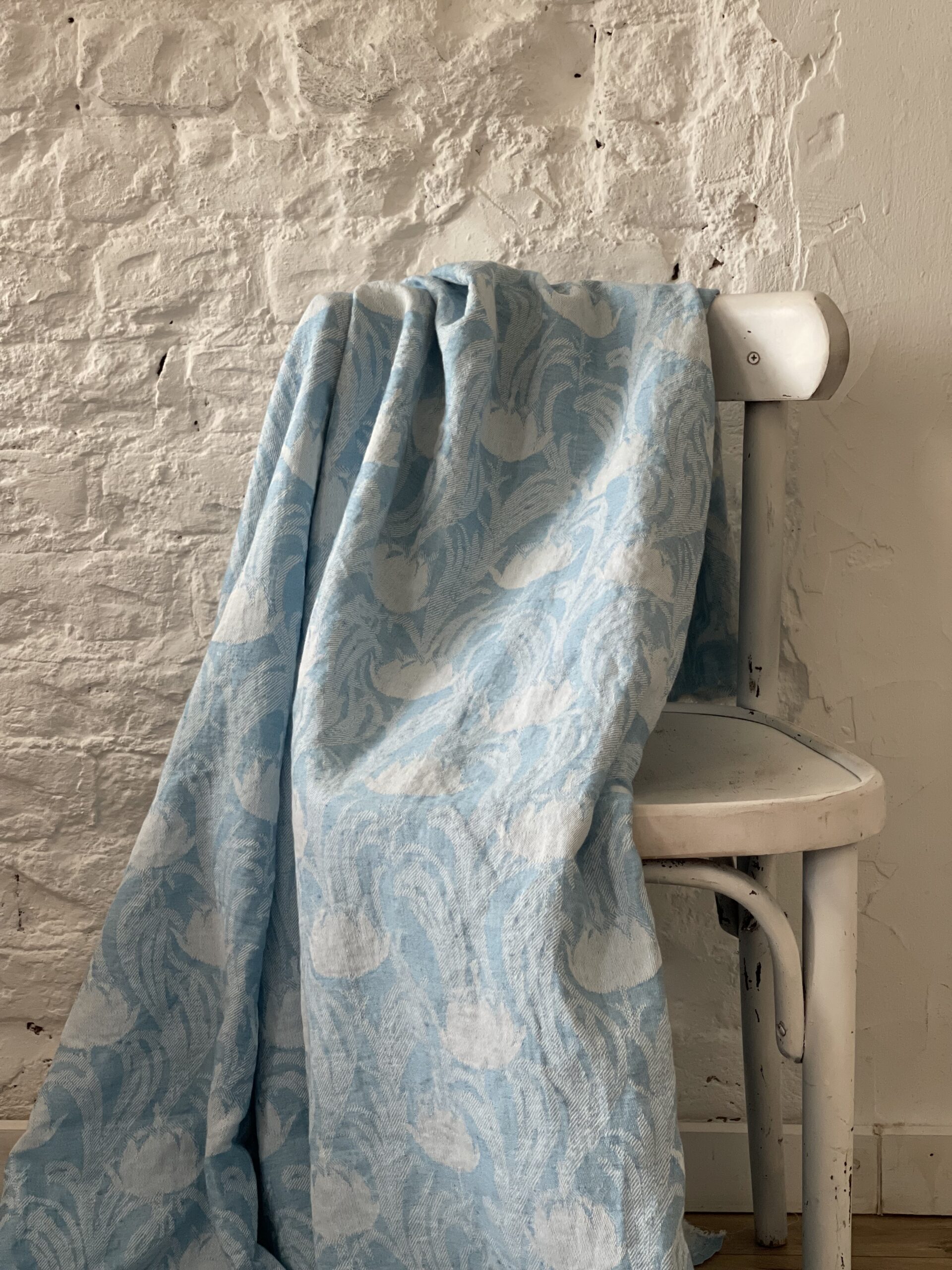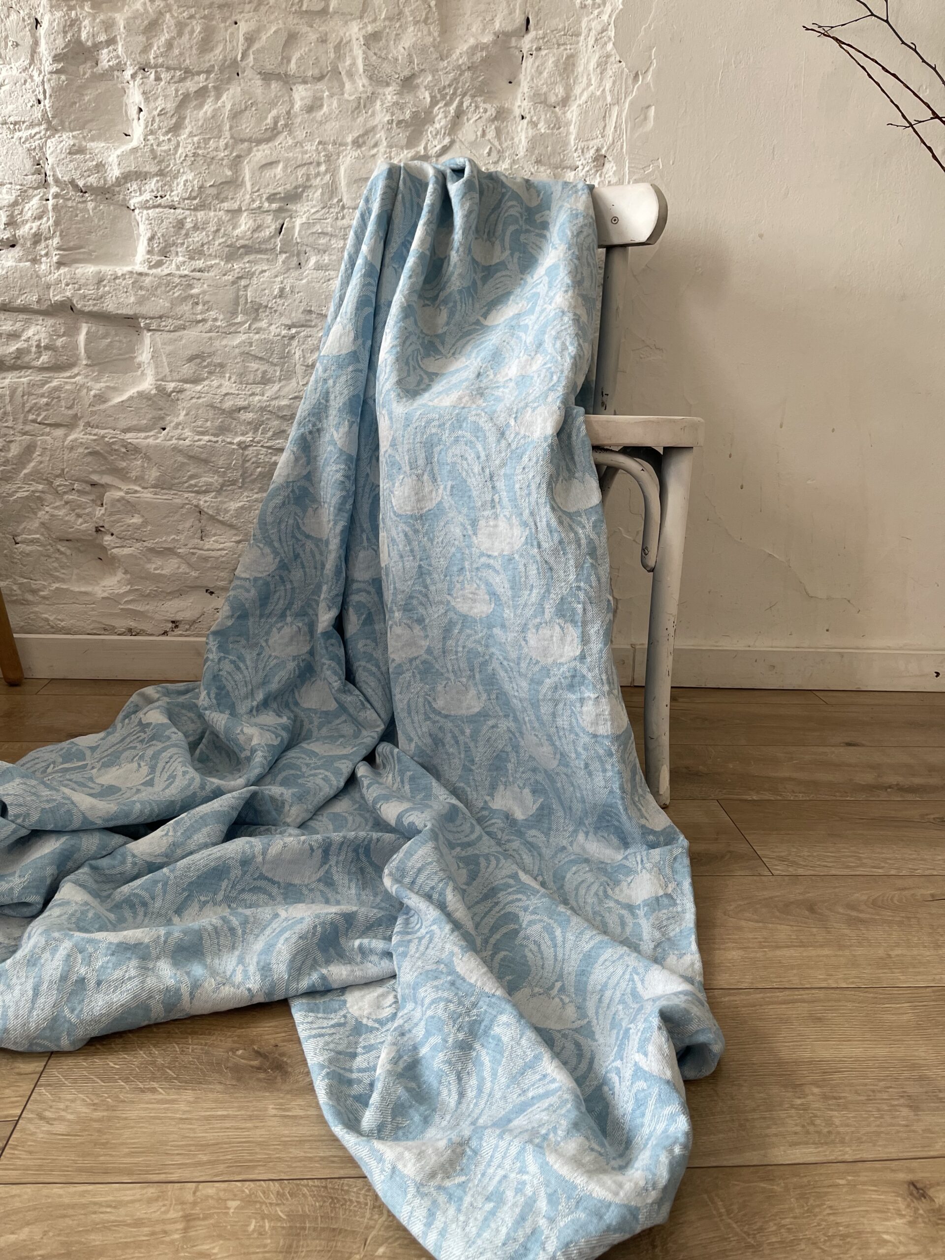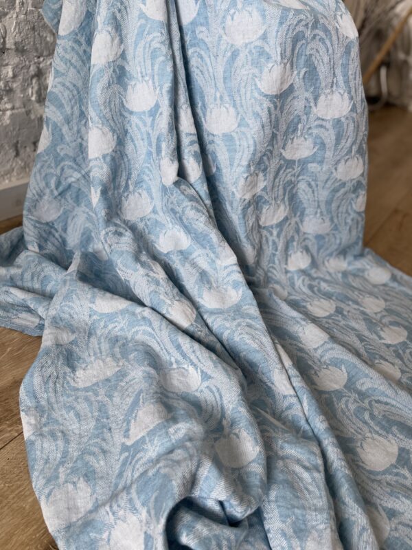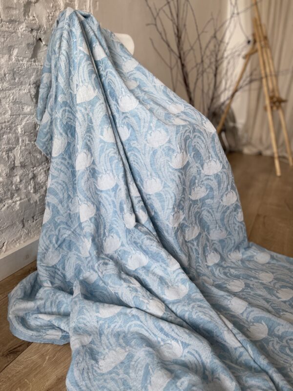 Льняное, умягченное, жаккардовое покрывало-плед.