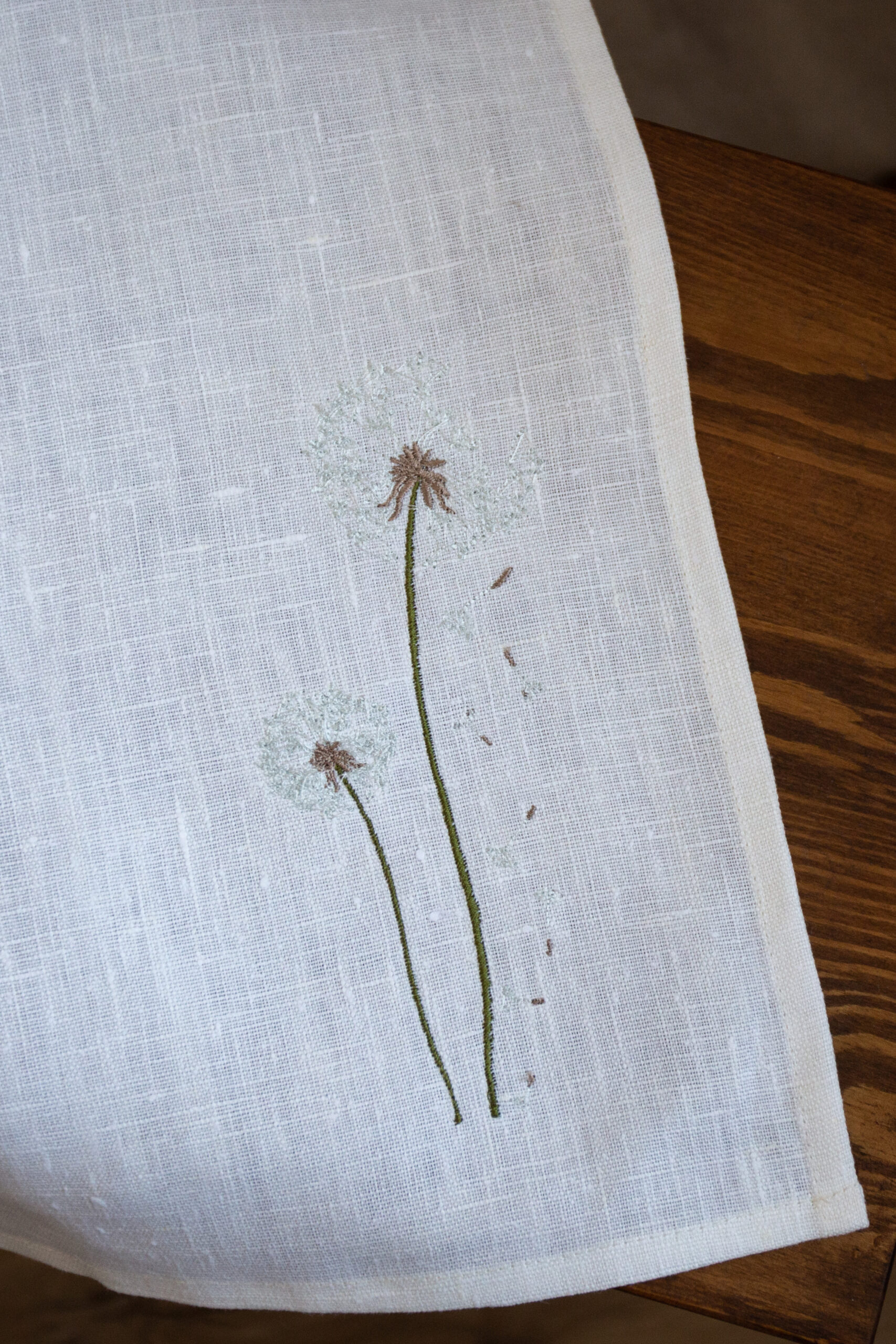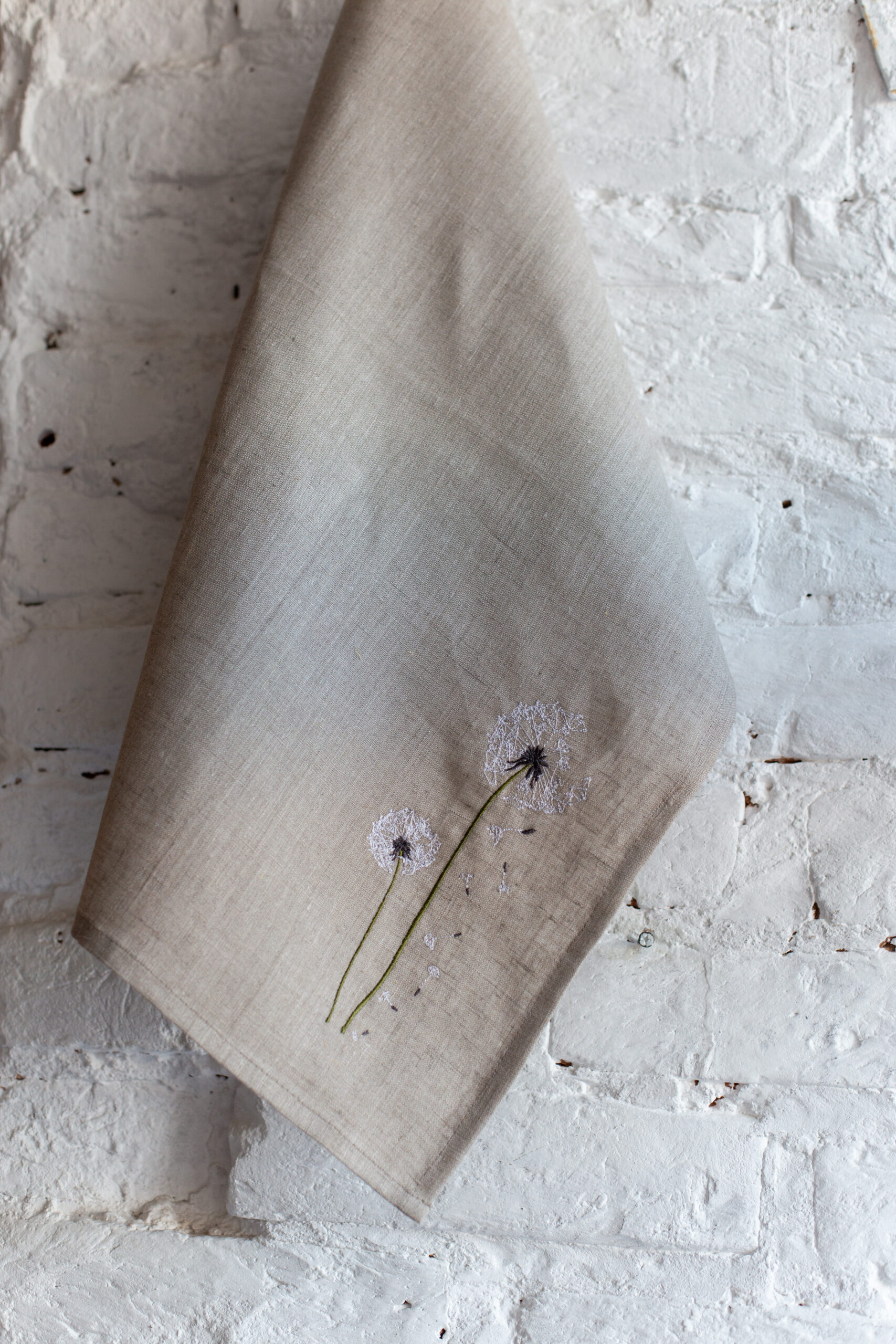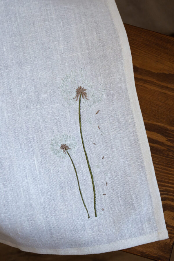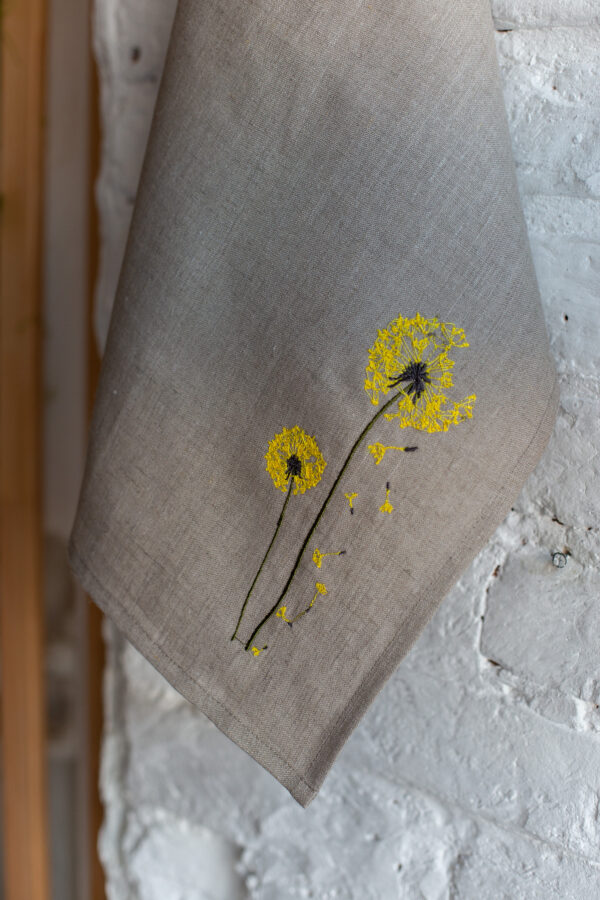 Льняное полотенце с вышивкой «Одуванчик». 100% лен.