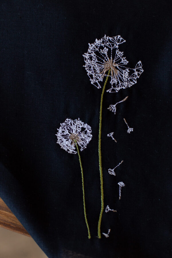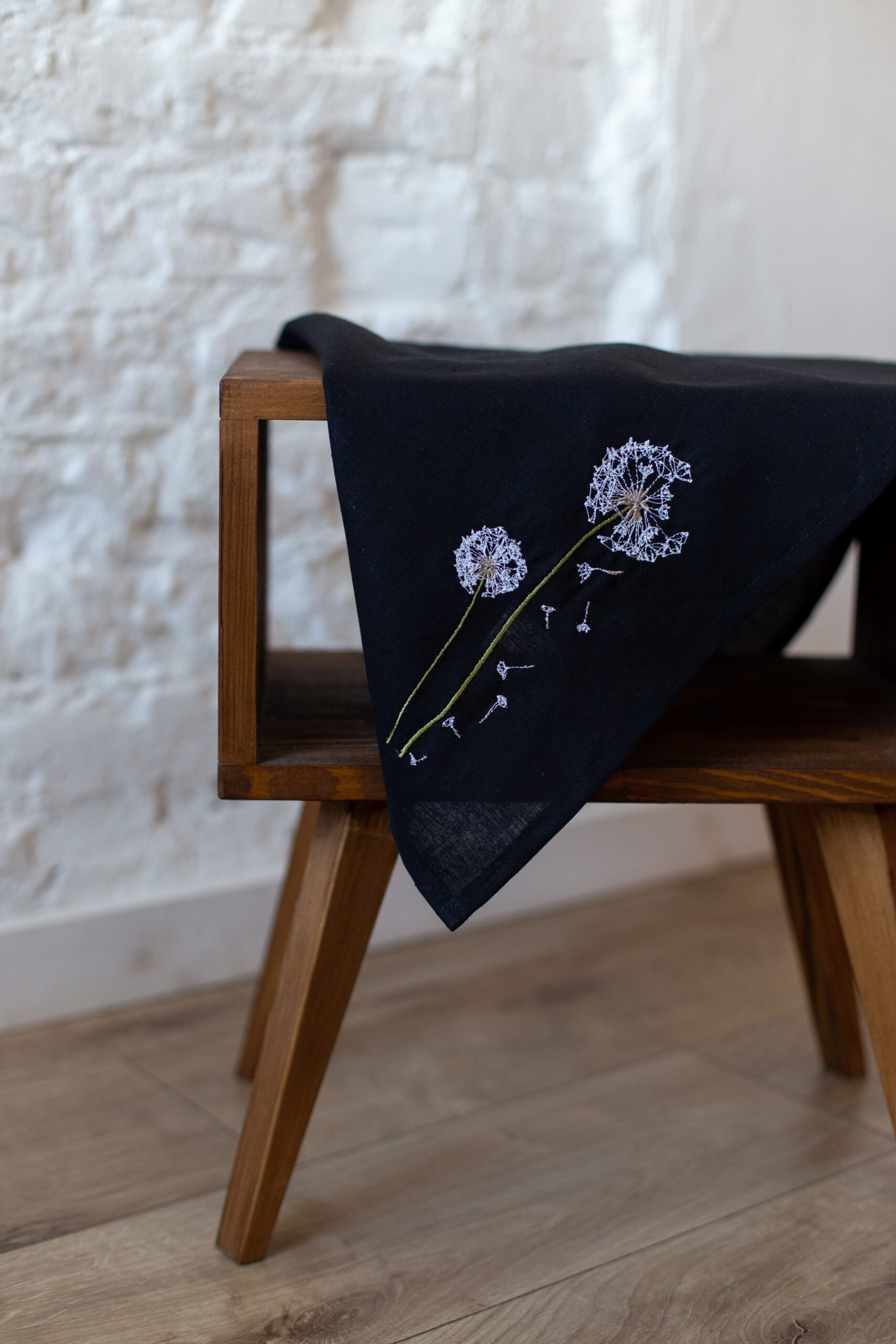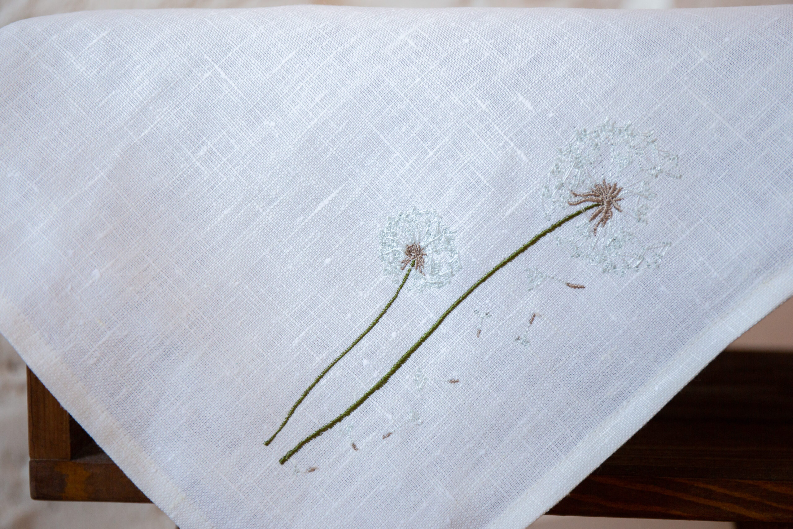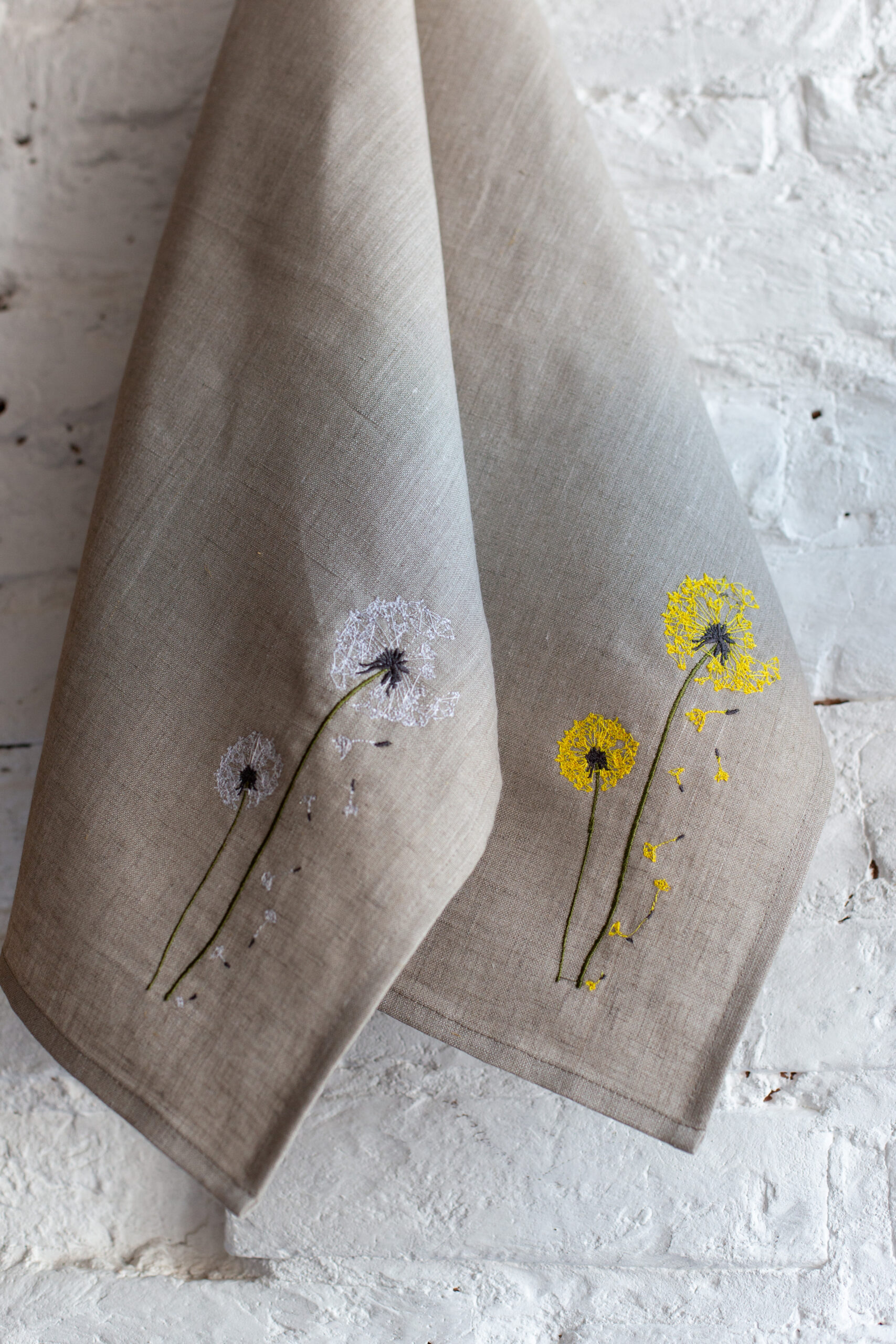 Льняное полотенце с вышивкой «Одуванчик». 100% лен.