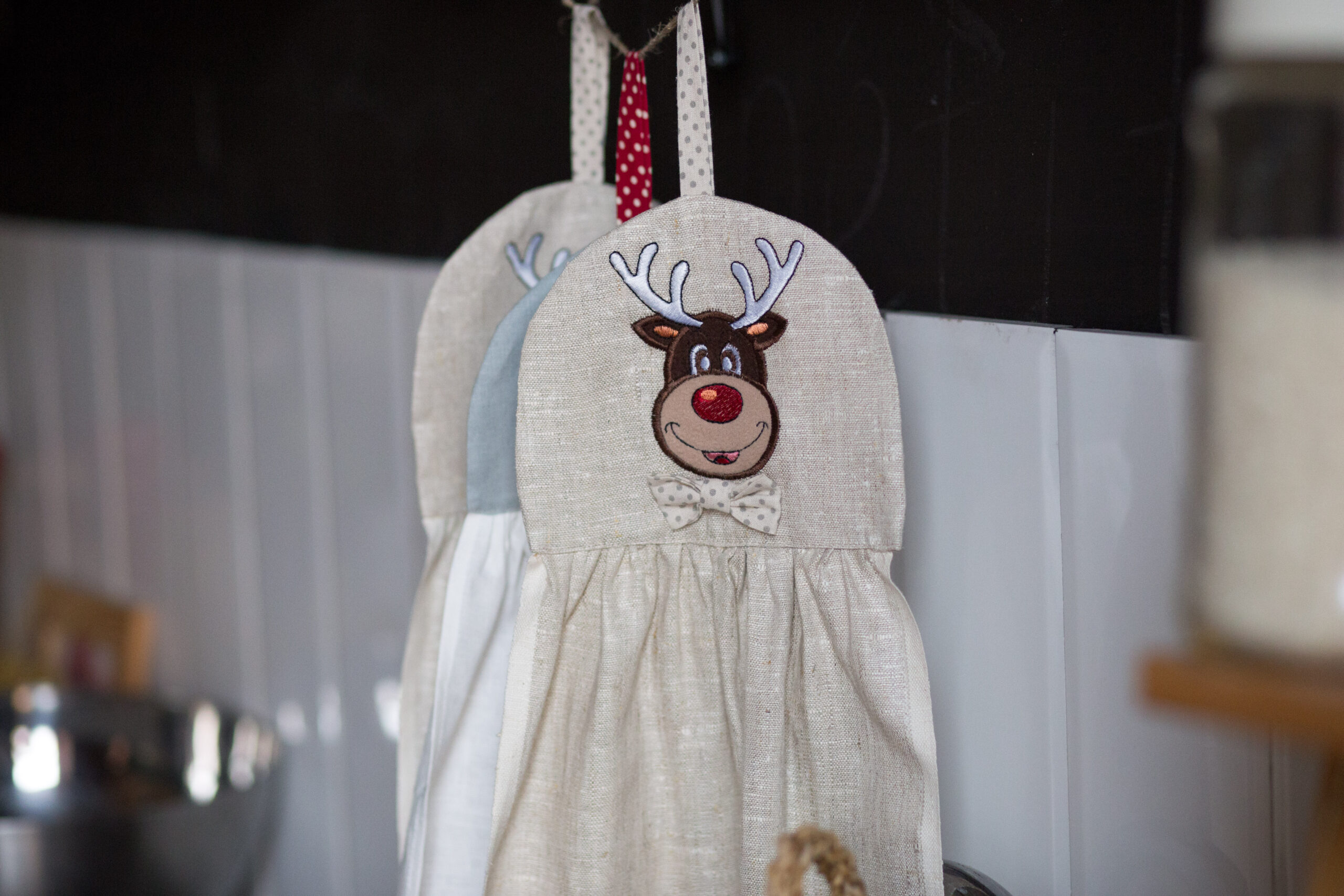 Льняное полотенце с аппликацией.