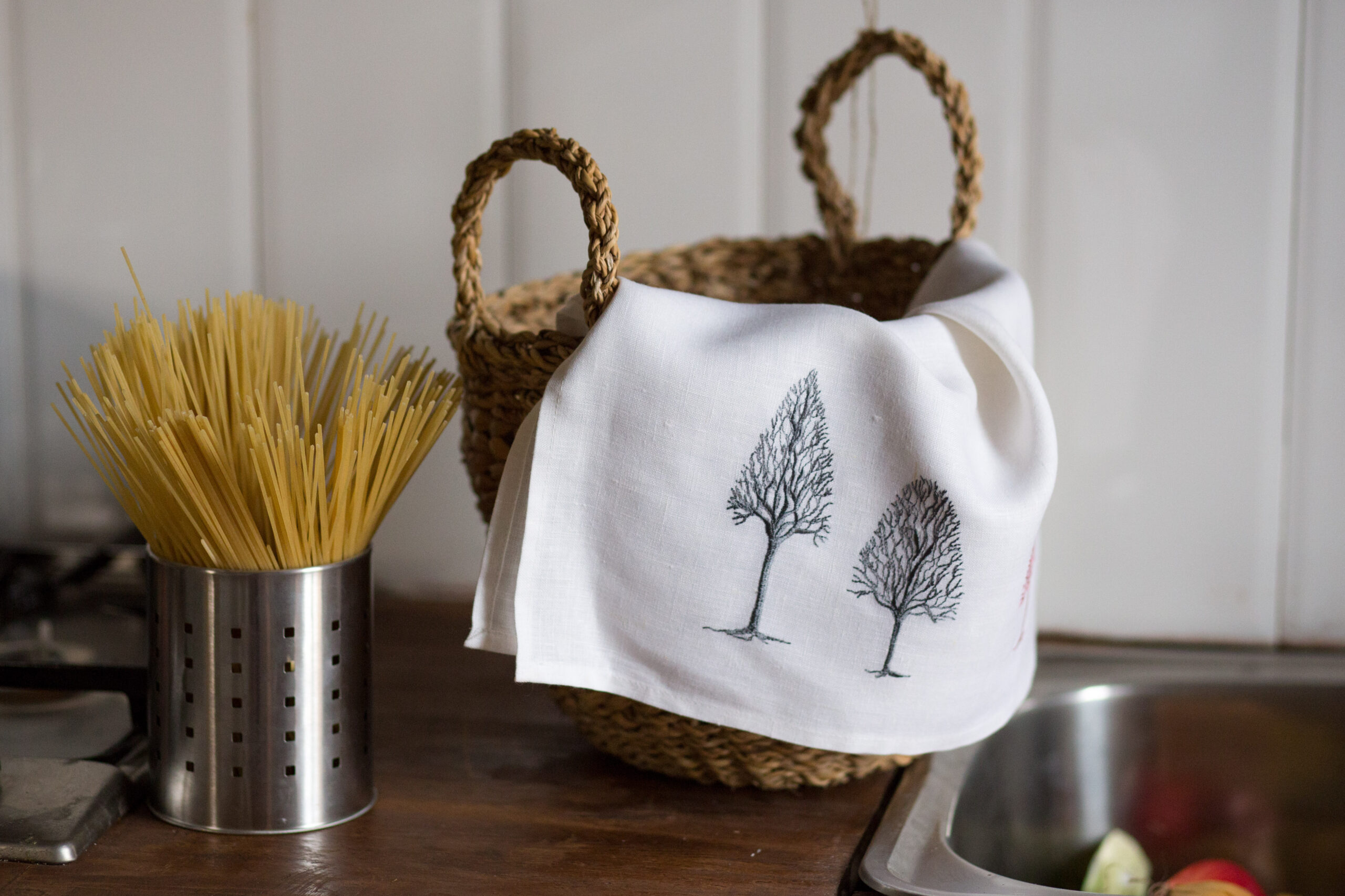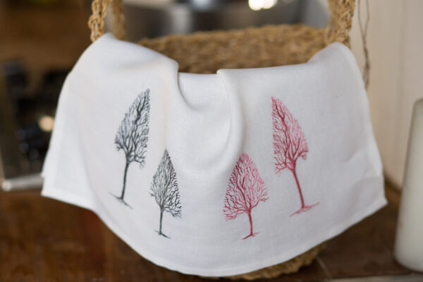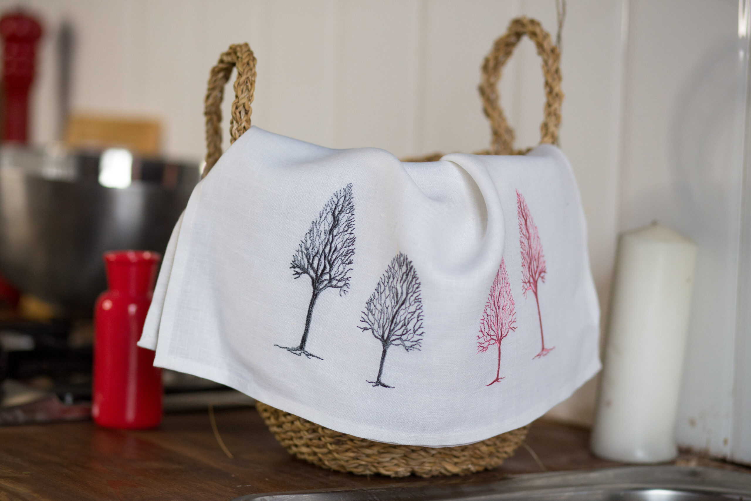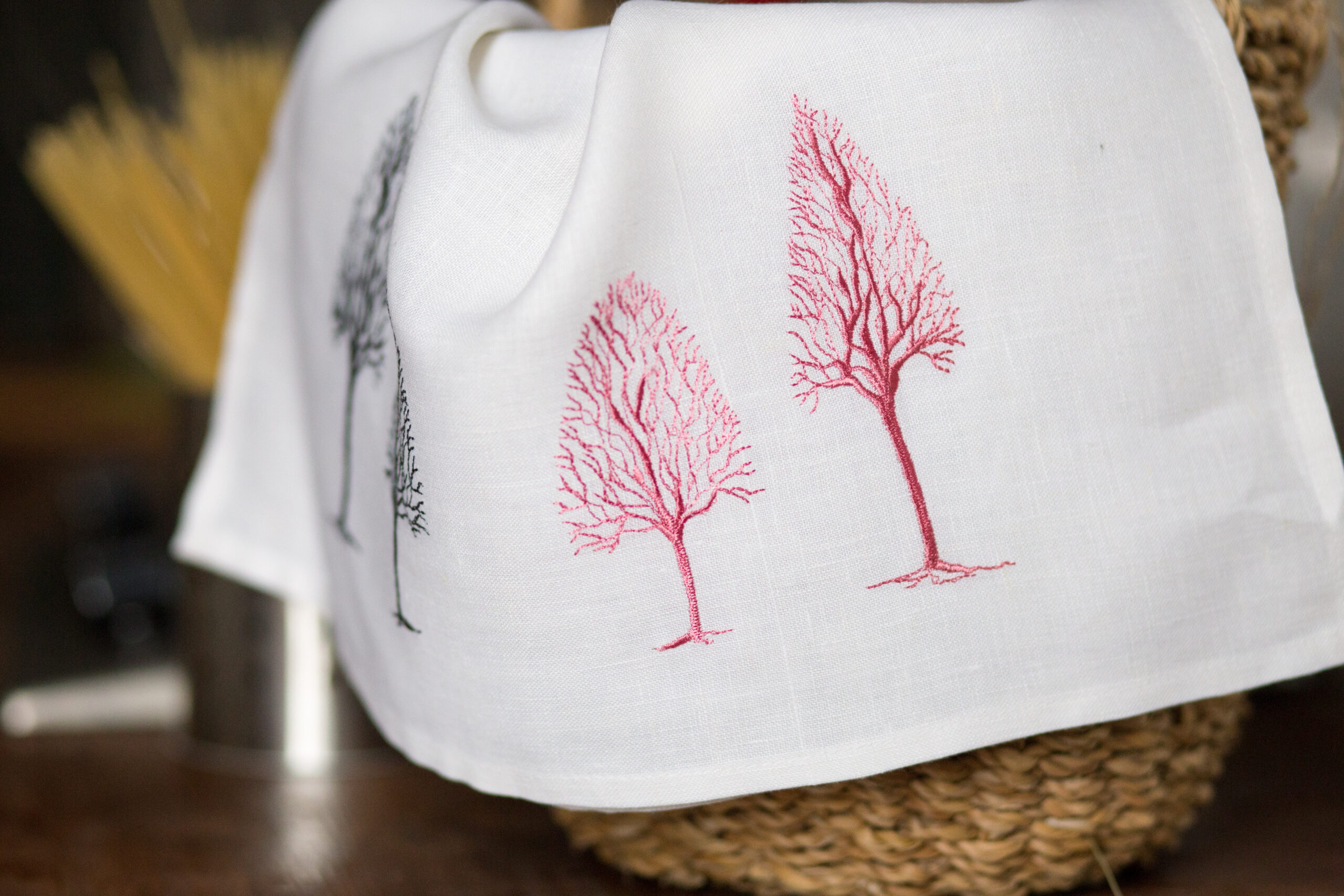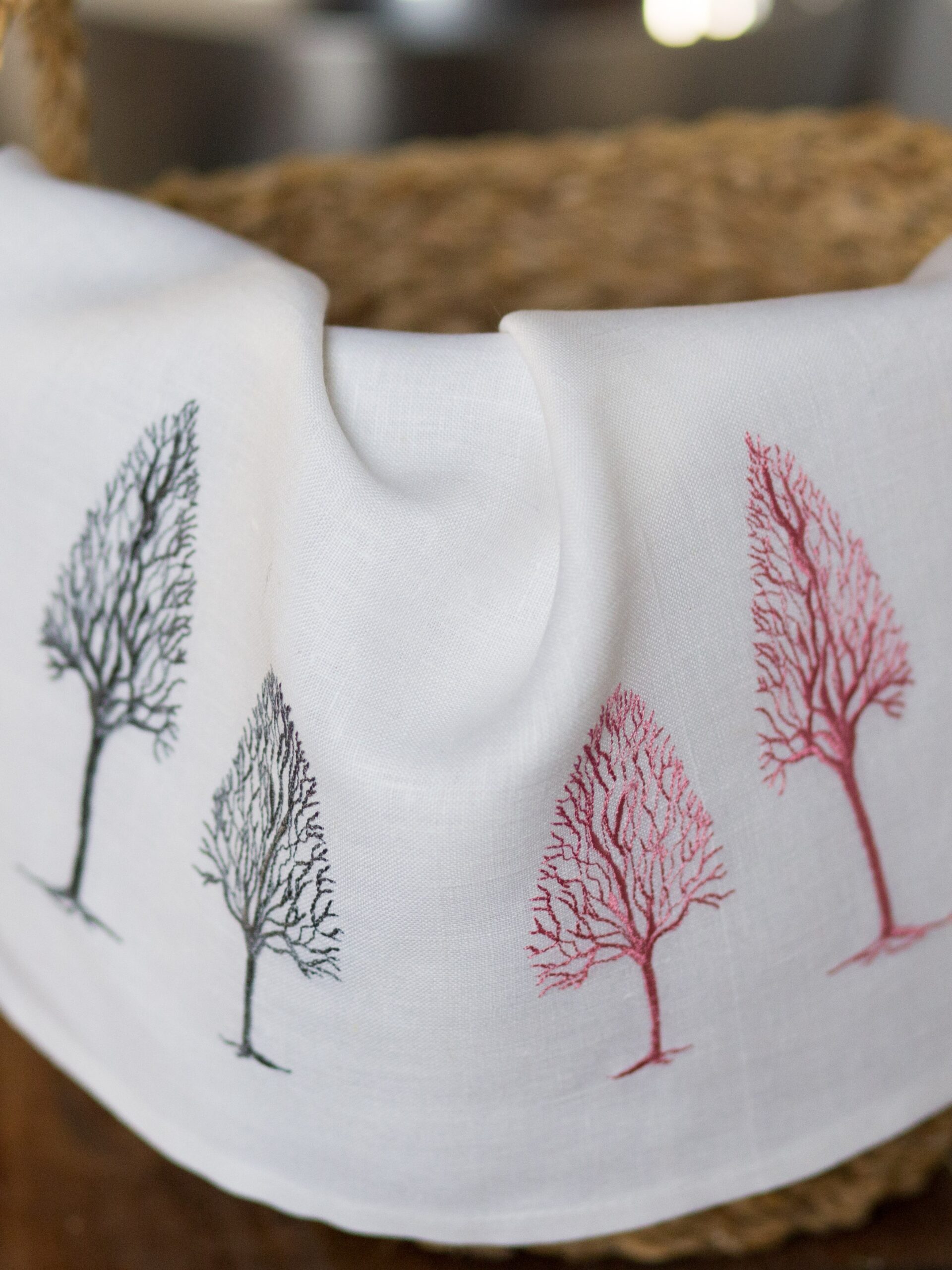 Льняное полотенце с вышивкой «Деревья». Состав 100% лен.