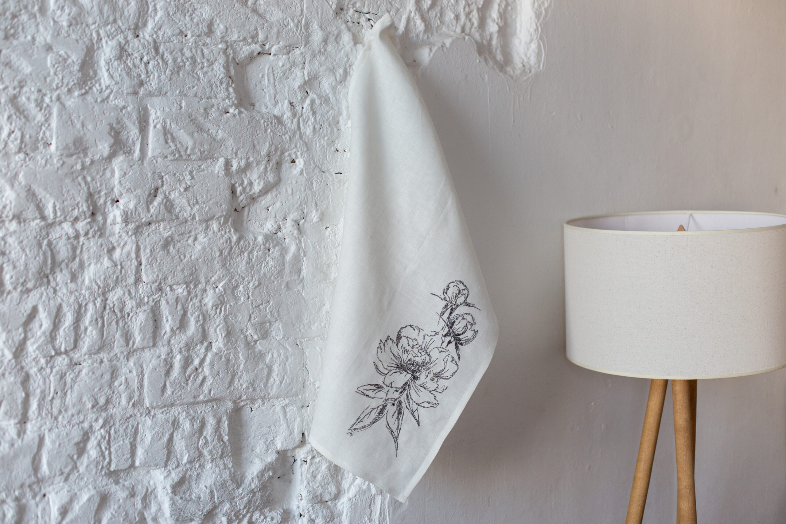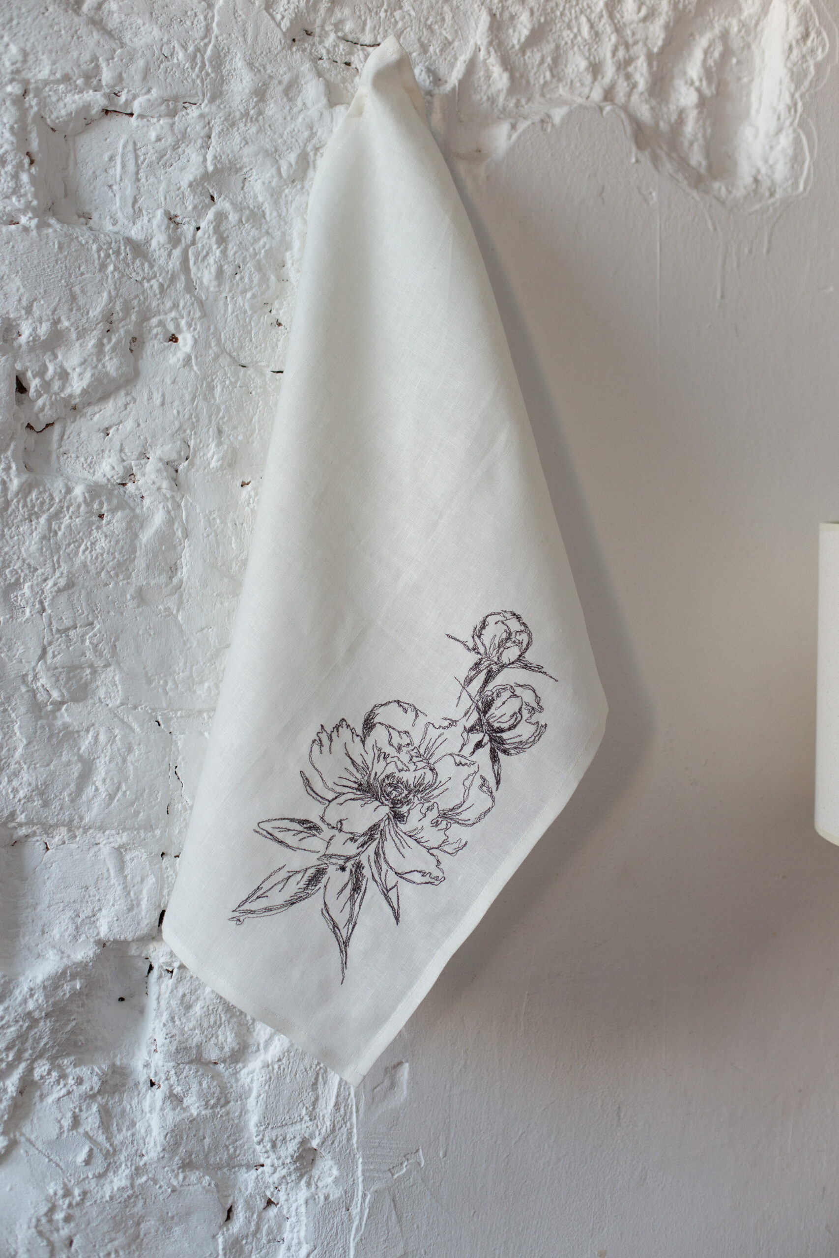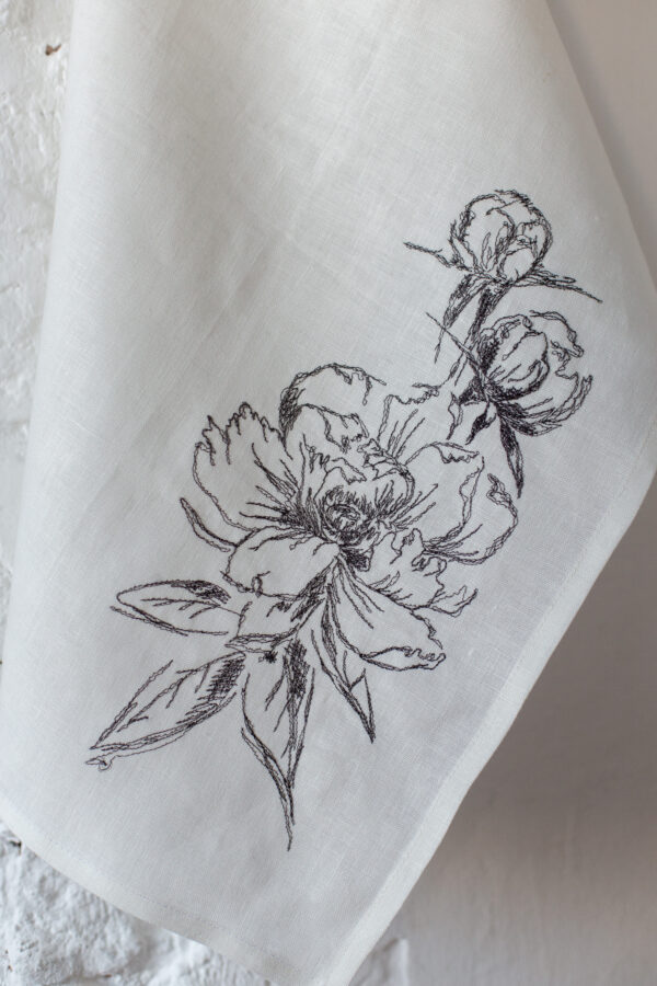 Льняное полотенце с вышивкой «Пионы».100% лен