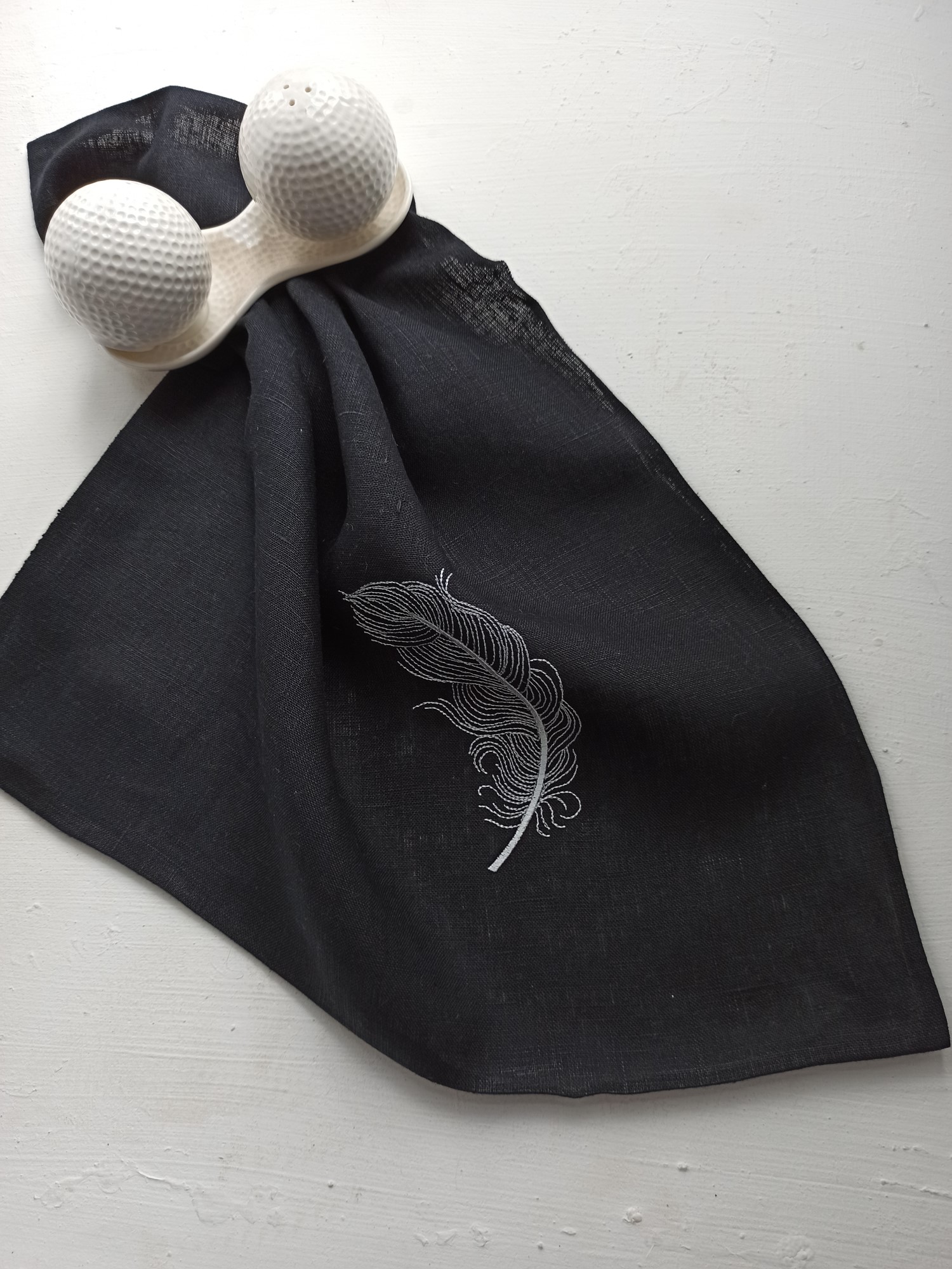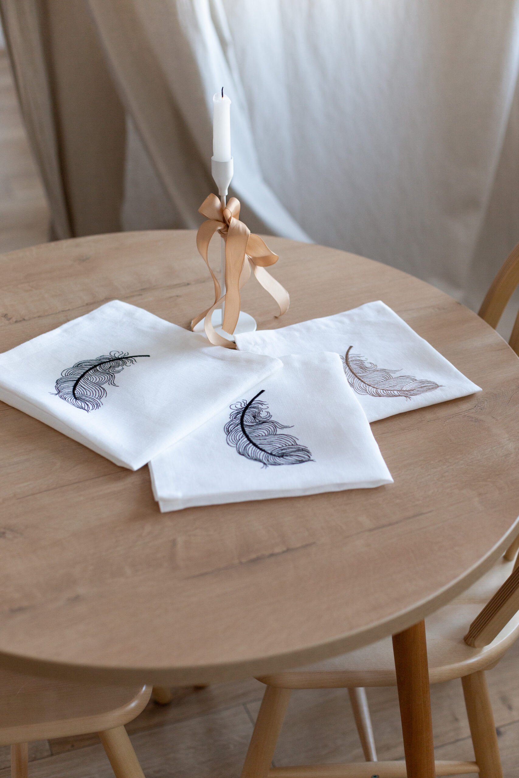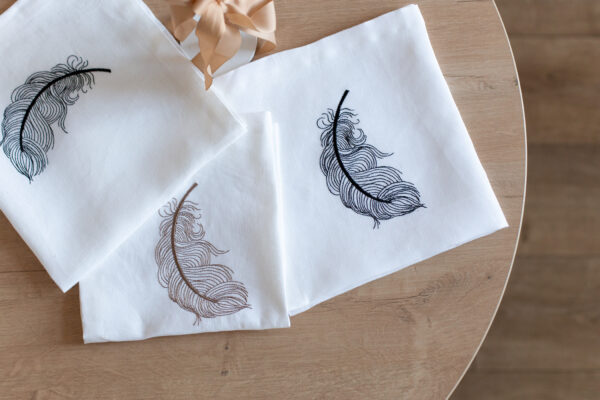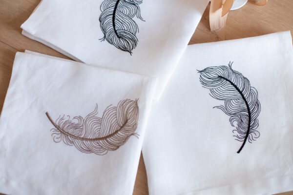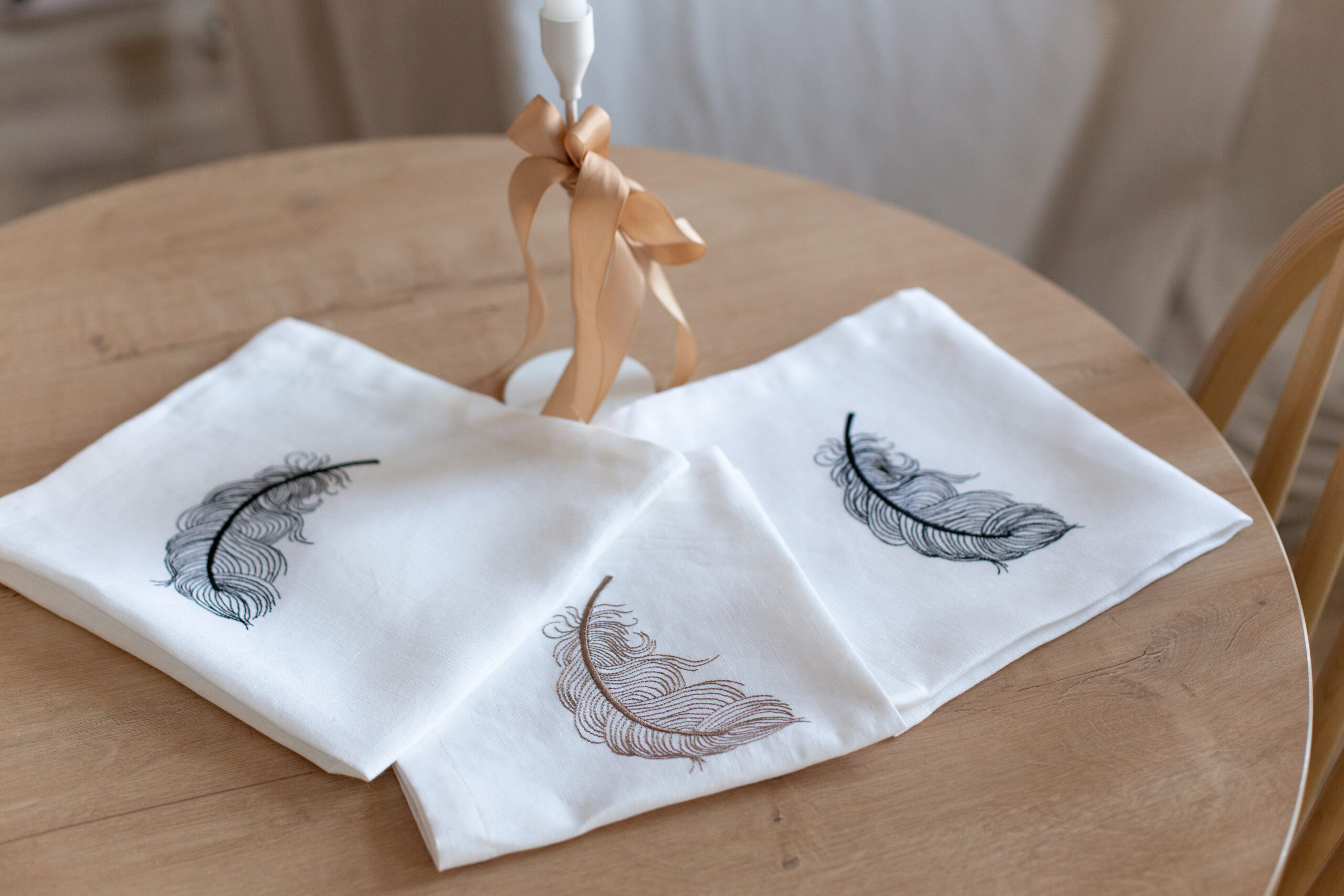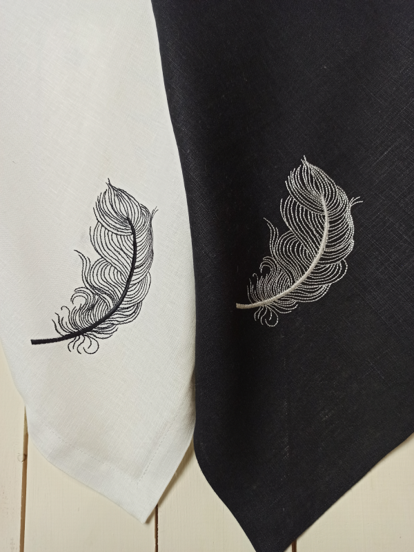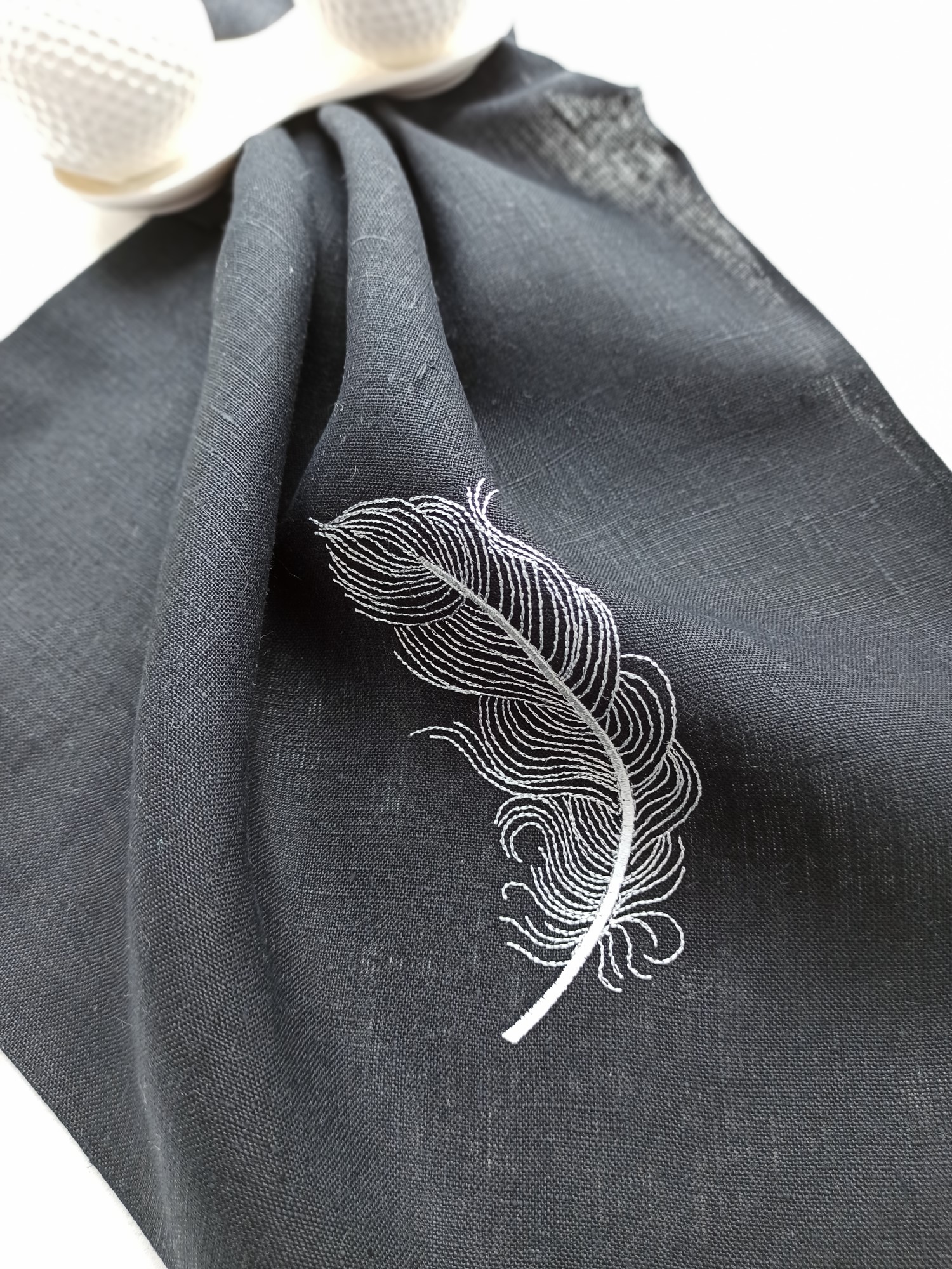 Салфетка льняная с вышивкой «Перо» идеально подойдет на Ваш праздничный стол.