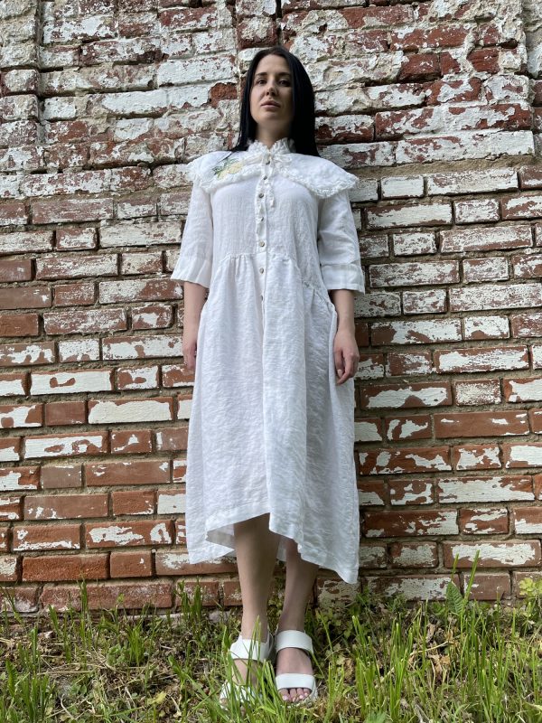 Платье льняное со съемным воротником